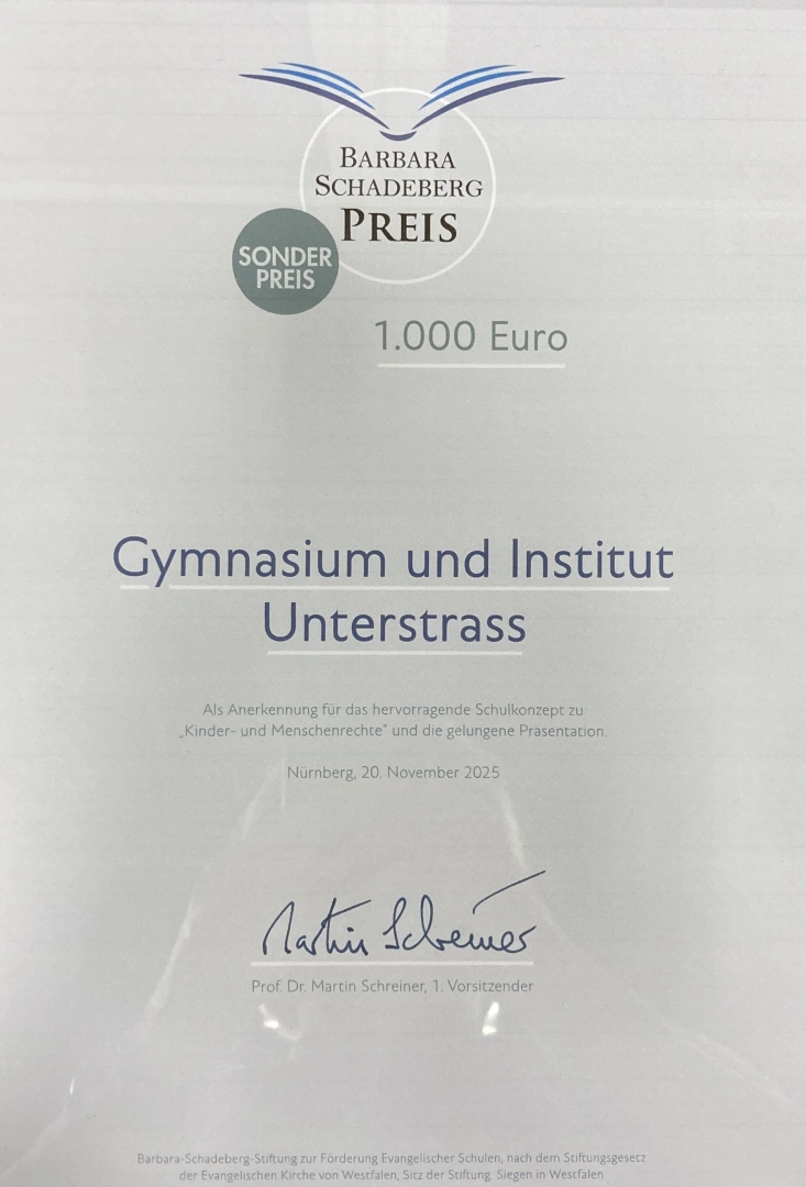 Die Auszeichnung bestätigt das besondere Profil des Instituts Unterstrass als evangelische Bildungsinstitution, die Inklusion nicht nur lehrt, sondern auch praktisch lebt und sich zum Ziel gesetzt hat, Barrieren im Bildungssystem zu überwinden.